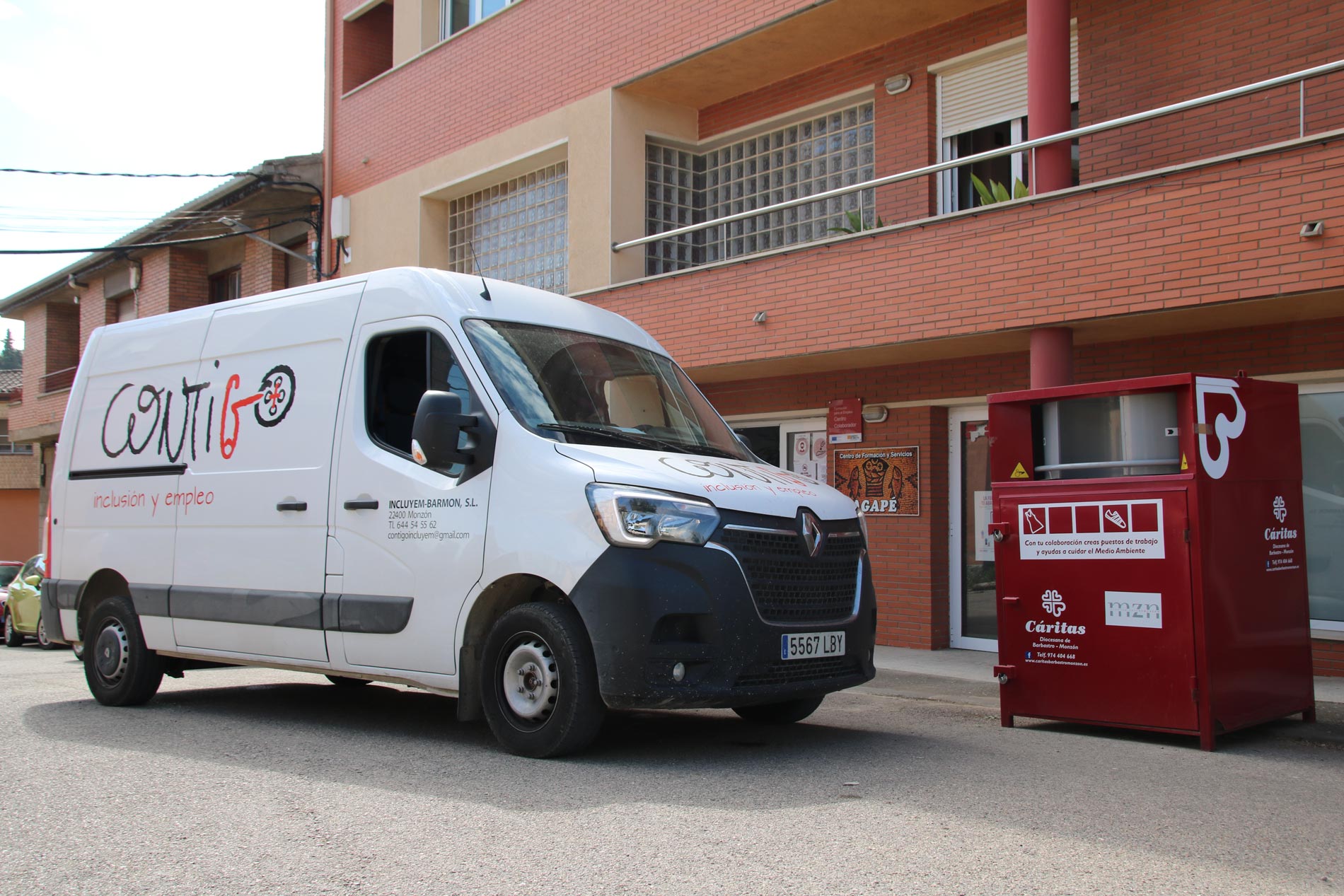 Recogida periódica de la ropa depositada en los 106 contenedores ubicados en más de 50 municipios de la zona oriental de la provincia de Huesca y trasladada a nuestro de Inserción “Valentín Ledesma” ubicado en Monzón.